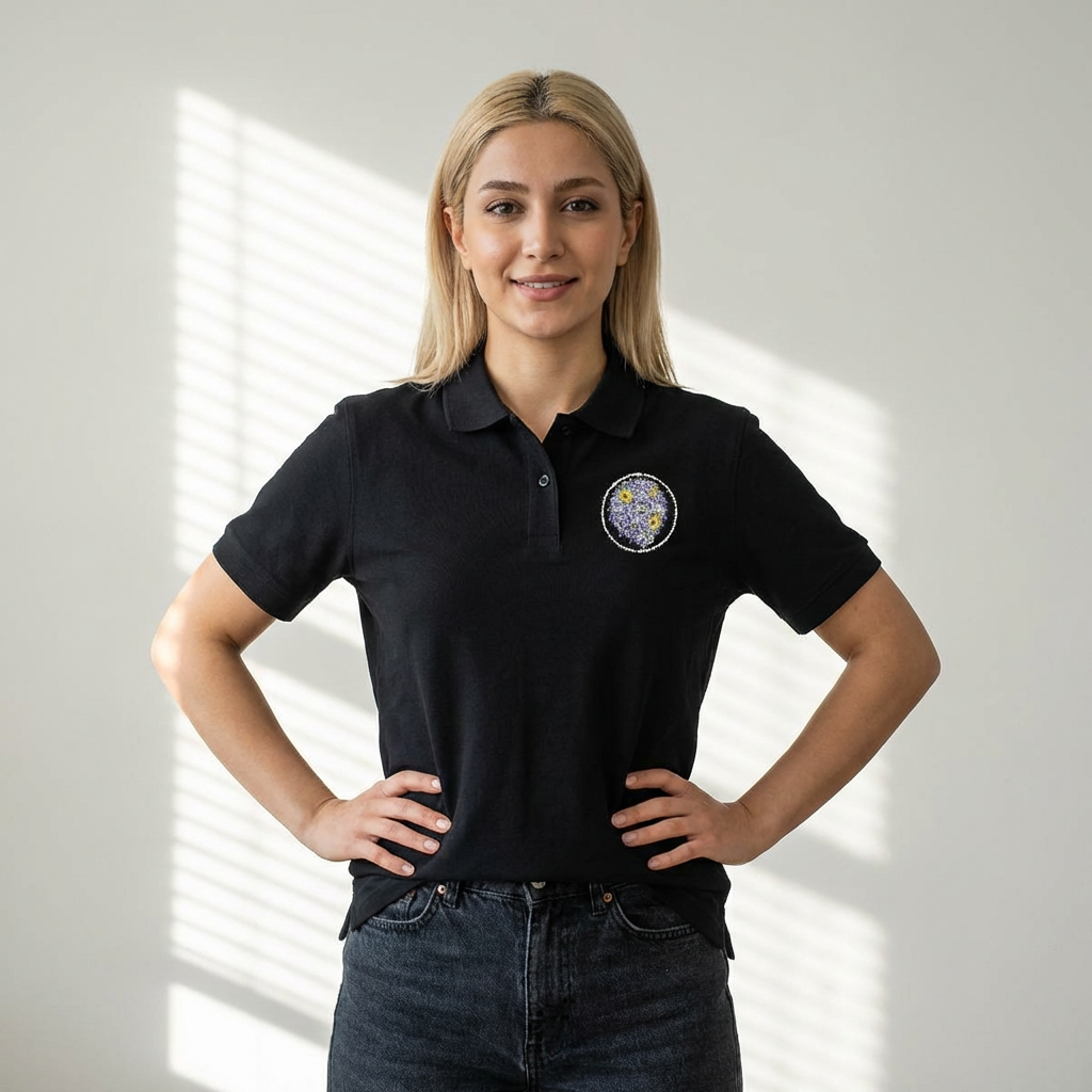 A lightweight, semi-fitted pique polo embroidered with a delicate floral emblem at the chest. The soft 100% ring-spun cotton feels smooth against the skin and holds structure longer thanks to side seams. Breathable and minimal, this polo slips easily into warm-weather wardrobes or layered business-casual looks. The subtle embroidered motif adds handcrafted character without shouting, making it a quiet statement piece for those who appreciate refined details and easy comfort.
